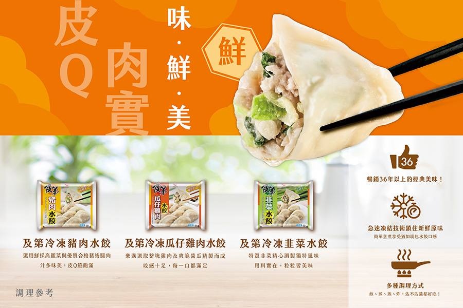 「及第」產品系列,皮Q肉實味鮮美,暢銷36年以上無法取代的經典好滋味!