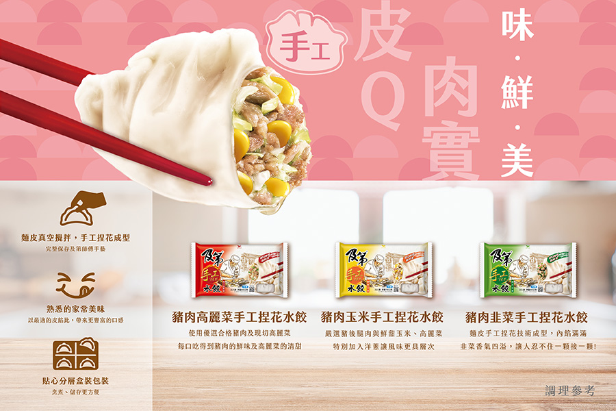 | 2021.06.18 | 【及第安心製程】冷凍豬肉玉米手工捏花水餃 |